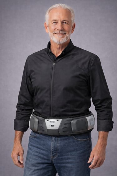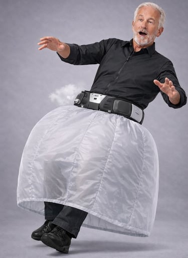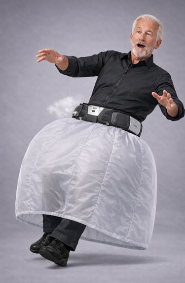 BOUNCE™ is a belt-mounted system designed to deploy protective airbags before a person hits the ground.