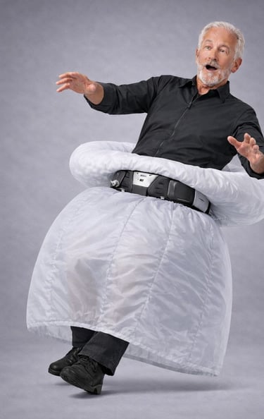 BOUNCE™ is designed to detect an imminent fall and deploy protective airbags before impact, forming a protective containment around the body.